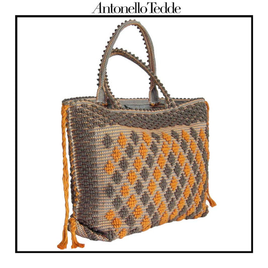 CAPRICCIOLI LARGE Rombetti Tote - Sustainable handwoven large tote fashion handbag - TAUPE with ORANGE