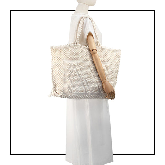 CAPRICCIOLI LARGE Rombi Tote - Sustainable handwoven large tote fashion handbag - CREAM LINEN bag