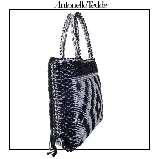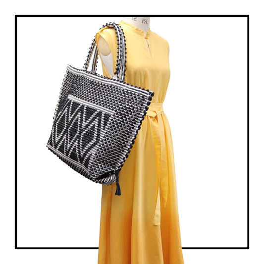 MACOMER - Sustainable handwoven large tote handbag - Meticulously hand-stitched with unparalleled craftsmanship. Black on White