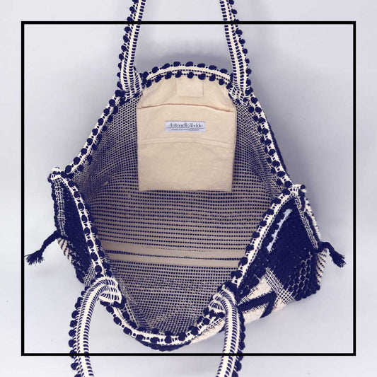 CAPRICCIOLI LARGE Rombi - Sustainable handwoven large tote handbag - Blue and cream bag