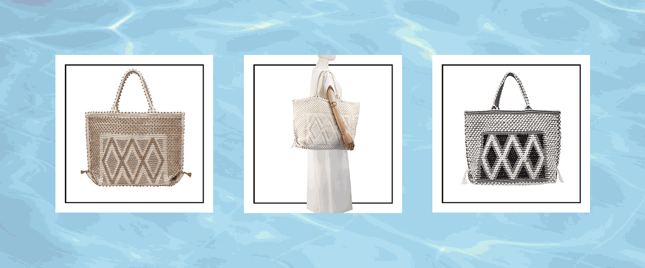CAPRICCIOLI LARGE Rombi Tote - Sustainable handwoven large tote fashion handbag - LIGHT GREY with CREAM bag