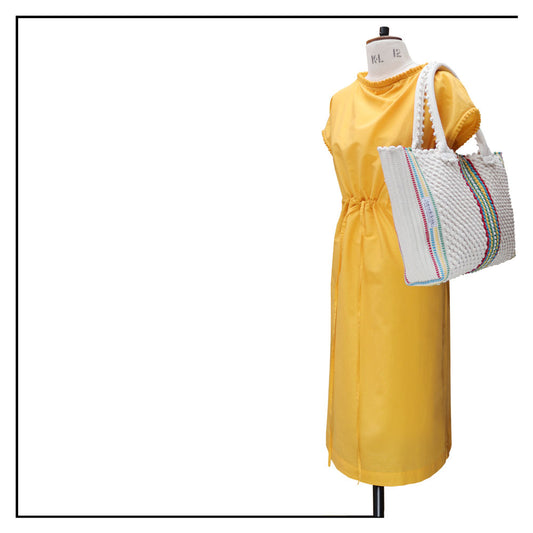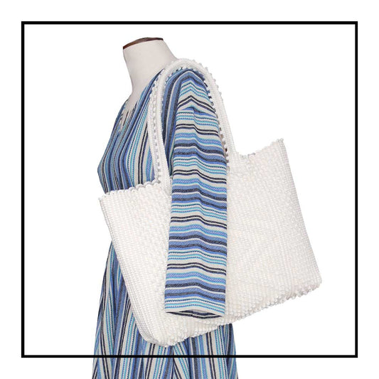 URTEI Strisce Multi Ethically Crafted Sardinian Handwoven Cotton tote: Sustainable Elegance preserving traditions CREAM bag