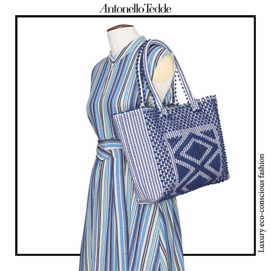 Urtei Rombi - Ethically Crafted Sardinian Handwoven Cotton tote: Sustainable Elegance preserving traditions BLUE WHITE bag
