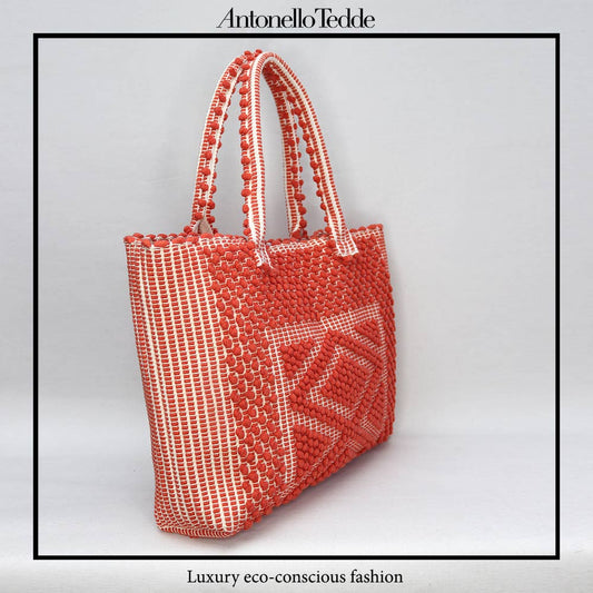 URTEI Rombi. Ethically Crafted Sardinian Handwoven Cotton tote: Sustainable Elegance preserving traditions CORAL bag